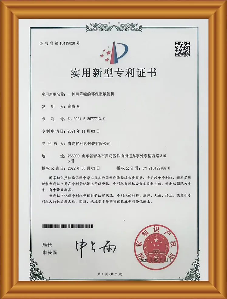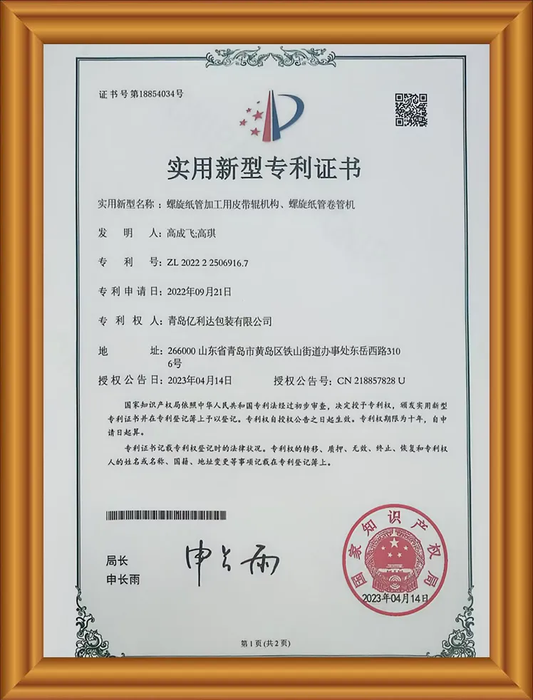 ہماری مصنوعات ایف ایس سی مصدقہ ہیں ، آئی ایس او 9001 مصدقہ ، سات پیٹنٹ رکھتے ہیں ، جس میں ایک آسان U- شکل والی کاغذی ٹیوب مشین ، ایک خصوصی اور جدید چھوٹے اور درمیانے درجے کا انٹرپرائز سرٹیفکیٹ ، پنی ٹیسٹنگ ، اور ایک کوالٹی سپلائر سرٹیفکیٹ شامل ہیں۔
